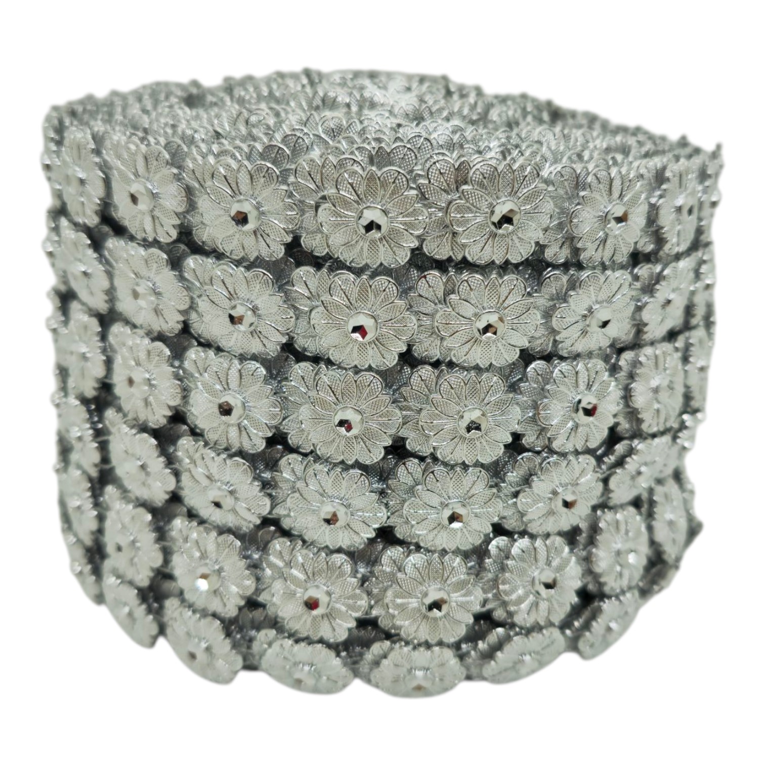 Falso strass fantasía «Flor mediana» plateado art.2335 11cm x 9mts – Pieza x 9mts