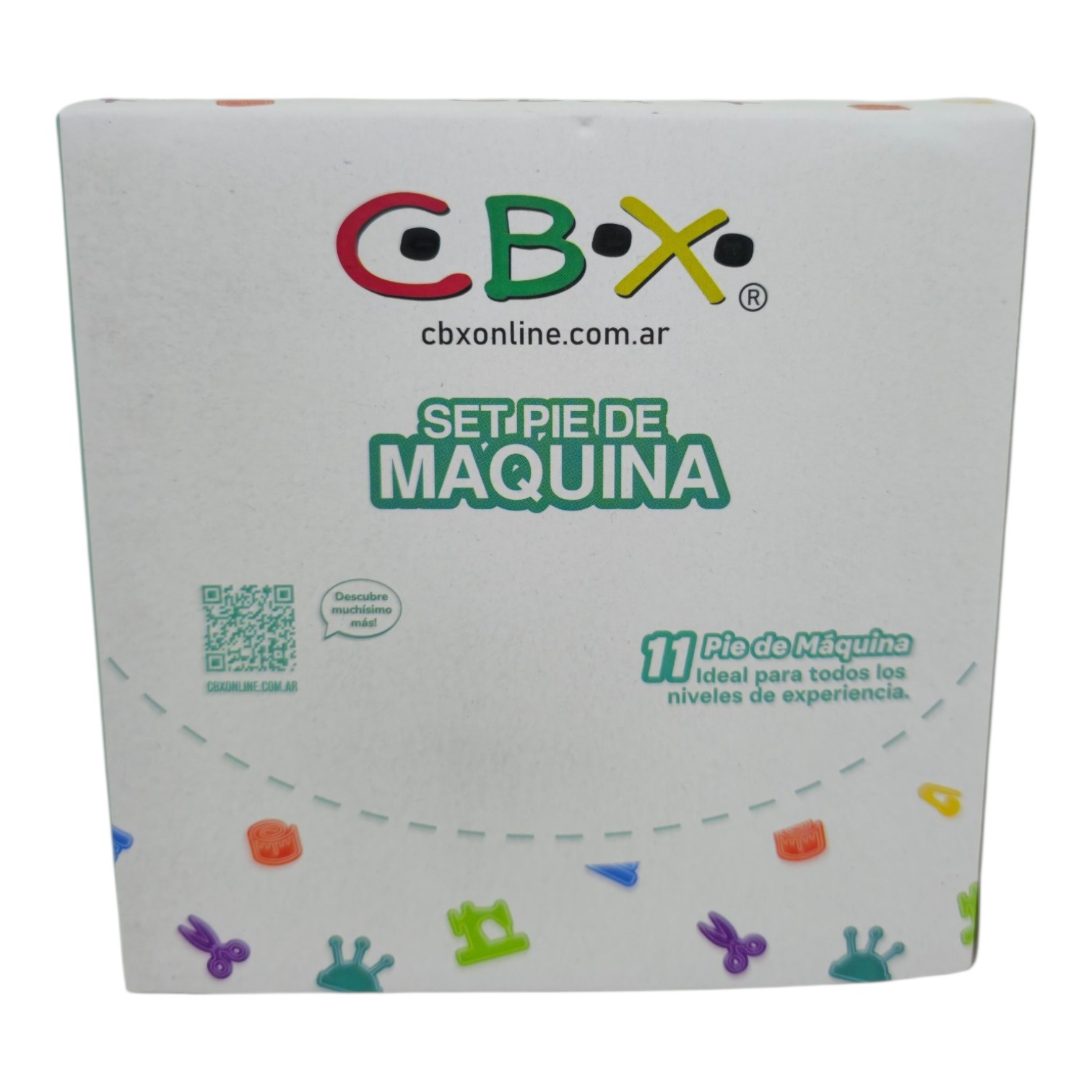 Set de pie de máquina CBX x 11 unidades – El set de pie de máquina CBX contiene uno de cada uno de estos pies: prensador de costura (o pie standard), de puntada recta, de teflón, de puntada invisible, de cremallera, de rodillos, de puntada satén (o bordado), para acolchado de 1/4″, de dobladillo estrecho, de cierre invisible y para coser botones.