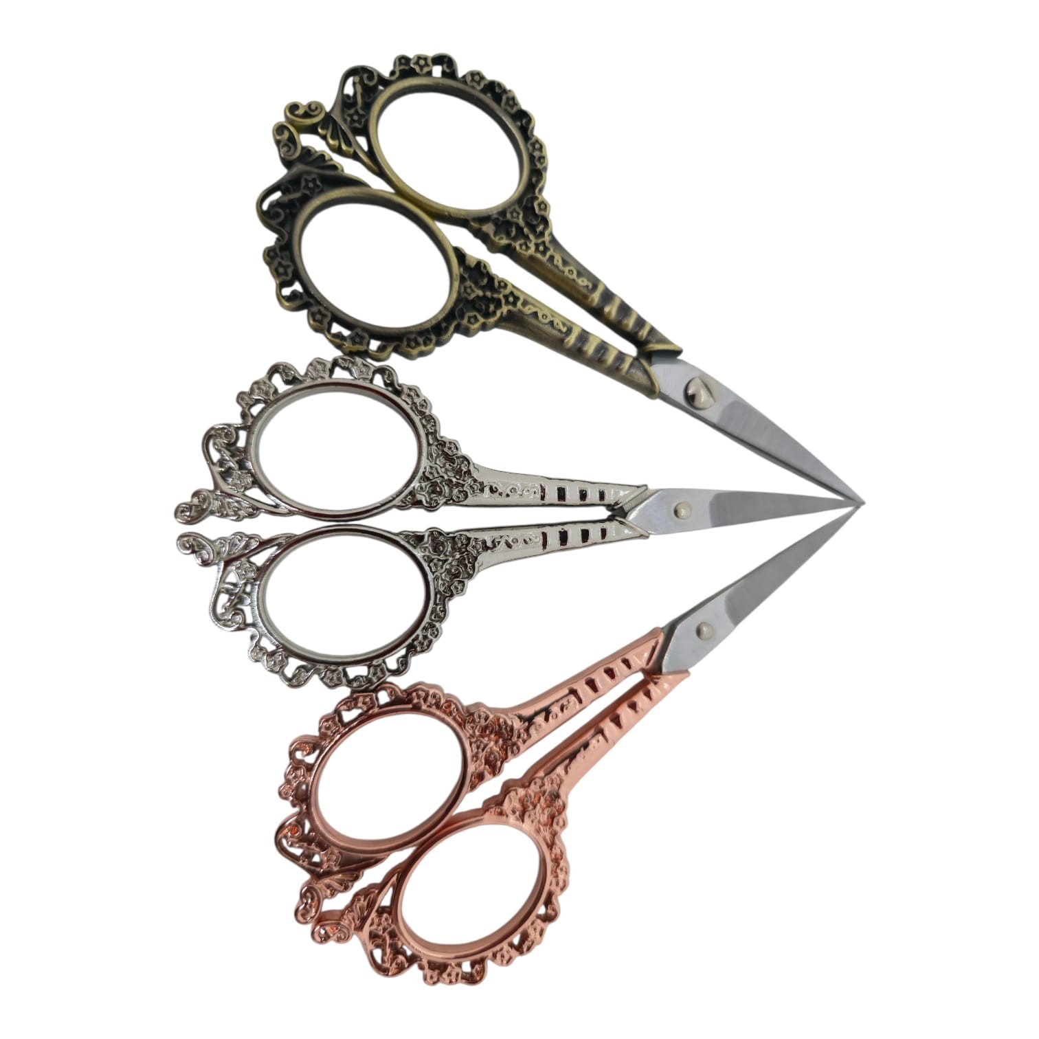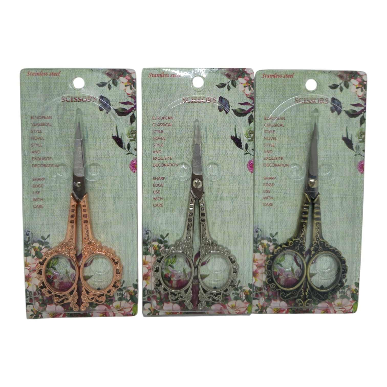 Tijera p/bordar MCL acero inoxidable y mango labrado con flores